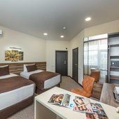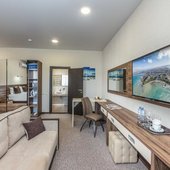 В числе удобств всех номеров кондиционер, телевизор с плоским экраном и кабельными каналами, холодильник, чайник, душ, фен и письменный стол. В номерах отеля есть шкаф и собственная ванная комната.