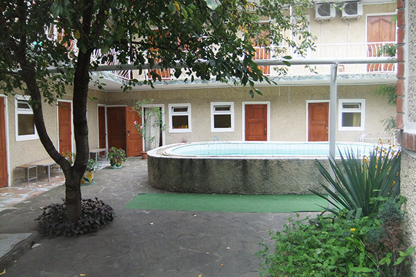 Трехэтажный корпус «Испанского дворика» в Анапе имеет собственный, закрытый от посторонних двор, площадью в 0,02 га, тенистый и украшенный зеленью, с удобными зонами для отдыха, приема пищи на свежем воздухе и детских игр.