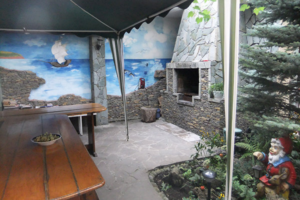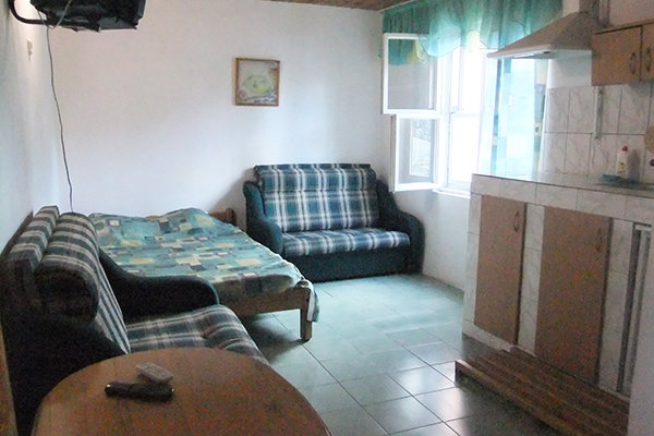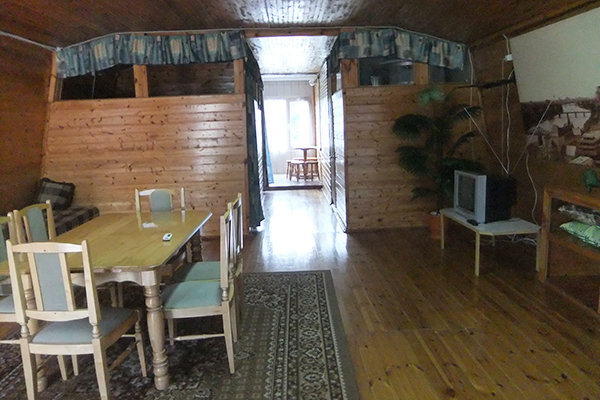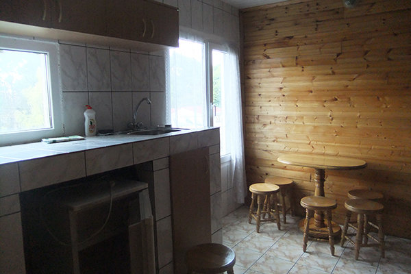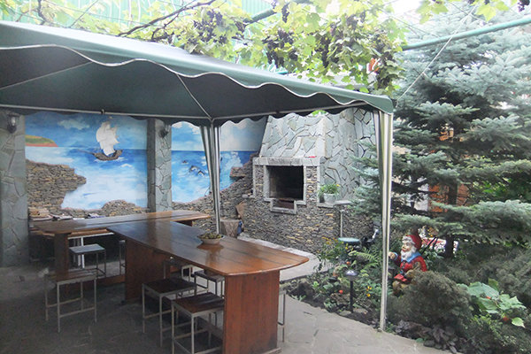 Для гостей, желающих готовить самостоятельно, есть две кухни-столовые с необходимыми бытовыми приборами, посудой, столами и стульями. Во дворе выделен уголок для мангала с навесом и необходимой мебелью для большой дружной компании. Самых различных пунктов питания на любой вкус достаточно неподалеку от гостевого дома.