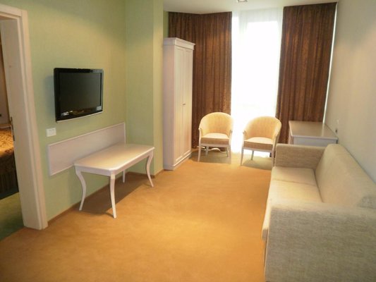 Комплекс включает семиэтажный жилой корпус, отдельный лечебно-оздоровительный центр, двухуровневый ресторан, клуб и круглогодично работающий крытый бассейн с панорамным остеклением.