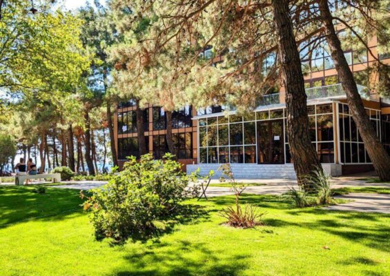 Особую прелесть здравнице придает близость моря (15 метров) и его доступность – благоустроенная набережная опоясывает территорию пансионата протяженностью 500 метров, ширина береговой линии составляет 50 метров.