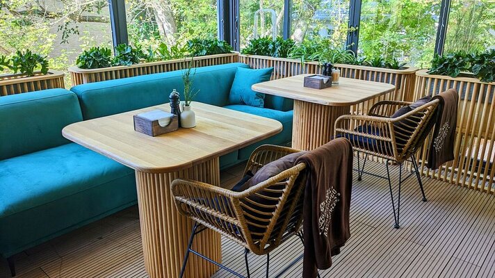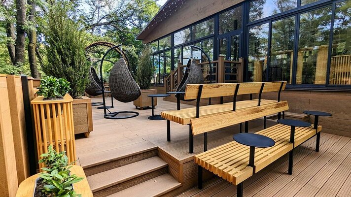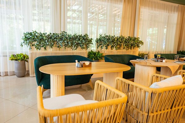 Работает новый современный ресторан «Можжевеловый». В ресторане 42 посадочных места в основном зале и 40 на террасе.