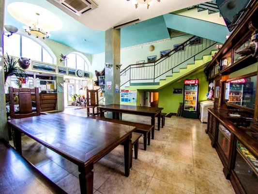 На территории работает ресторан, где можно побаловать себя вкусными блюдами, а также отлично провести время. А на общей полностью оборудованной кухне Вы сможете приготовить любимые блюда практически как в домашних условиях.