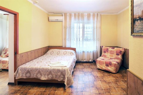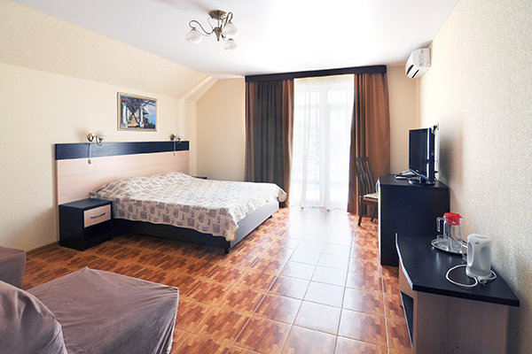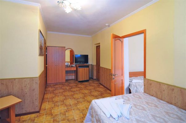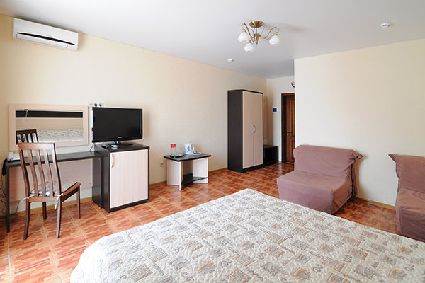 В каждом номере вы обязательно сможете найти телевизор, телефон, холодильник, сплит систему, сейф, Wi-Fi интернет. По желанию есть возможность предоставления дополнительного места и детских кроваток.