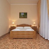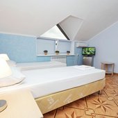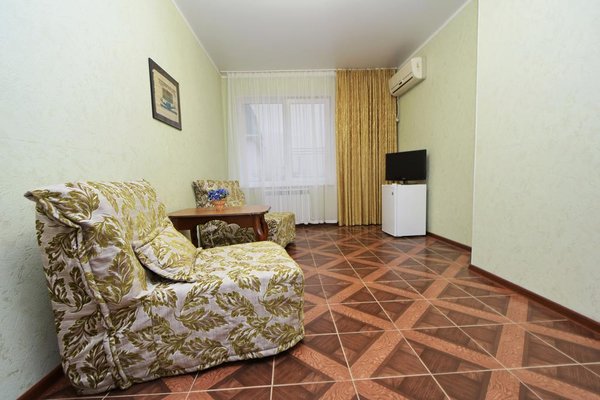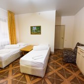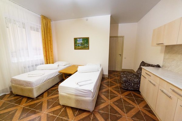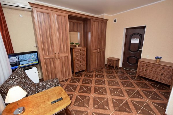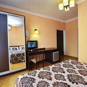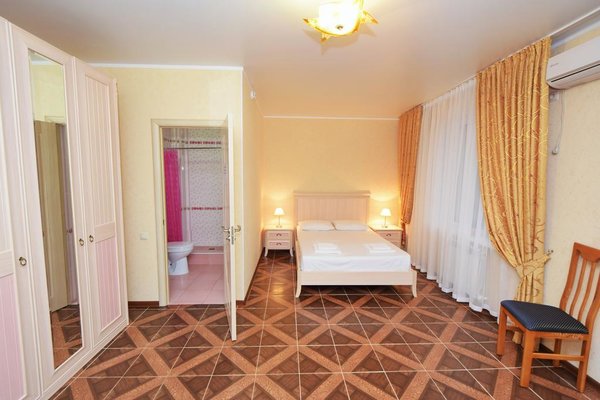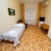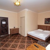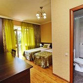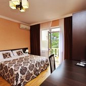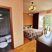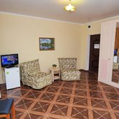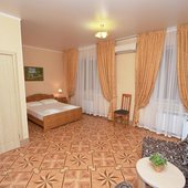 На огражденной охраняемой территории гостевого дома «Касабланка» в распоряжении гостей четыре этажа благоустроенного корпуса с номерами разных категорий. Семьям и компаниям подойдут 2-комнатные апартаменты, а парам, скорее всего, понравится номер в мансарде. Номера оборудованы ванными комнатами с круглосуточным горячим и холодным водоснабжением, комфортабельной мебелью из натурального дерева, а также современной техникой.