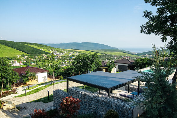 Отдельно от спальной зоны находятся 3 мангальные площадки, с которых открывается панорамный вид на горы и море.
