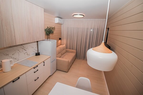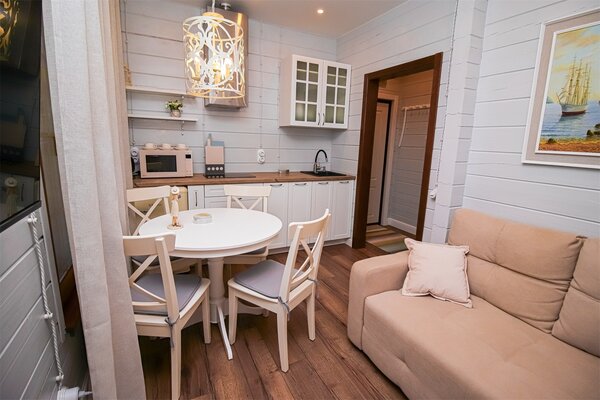 Площадь 30м², есть терраса. Вместимость — 6-8 человек.