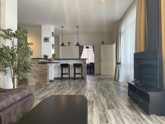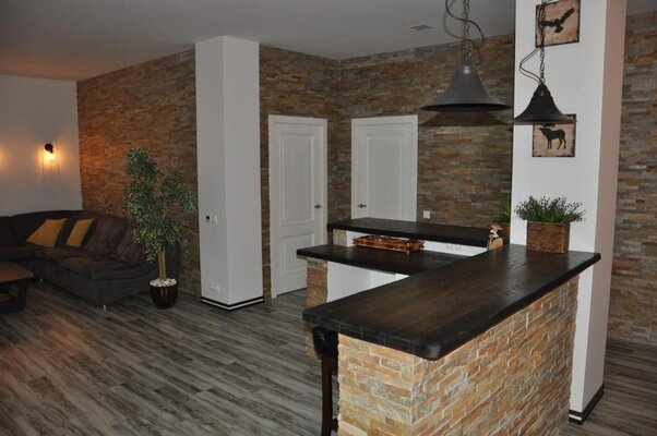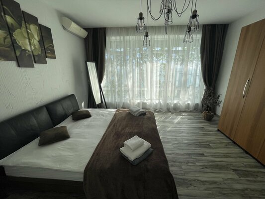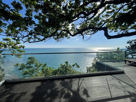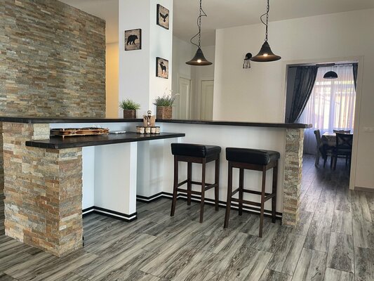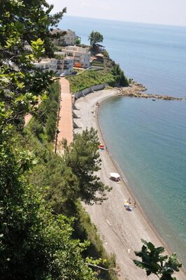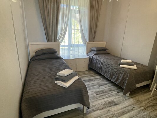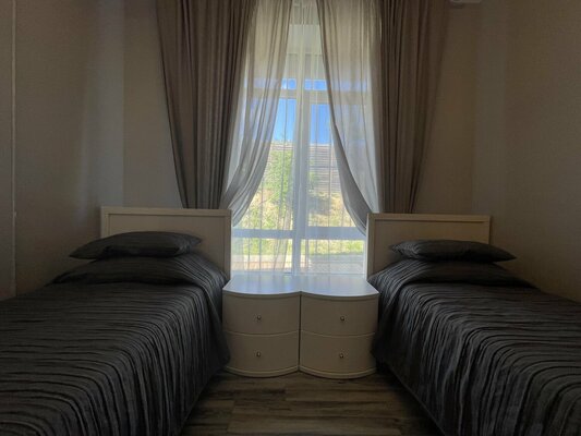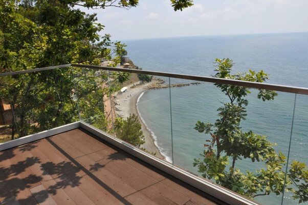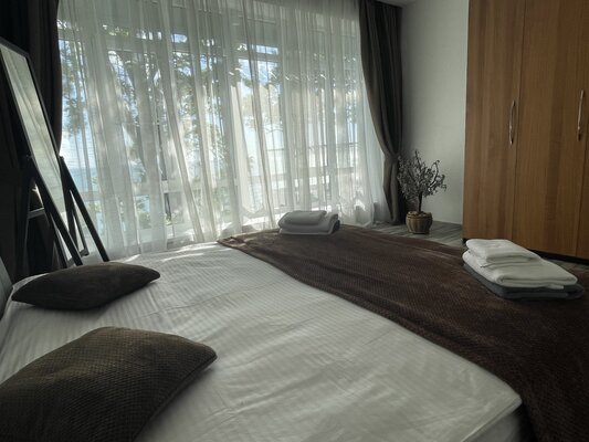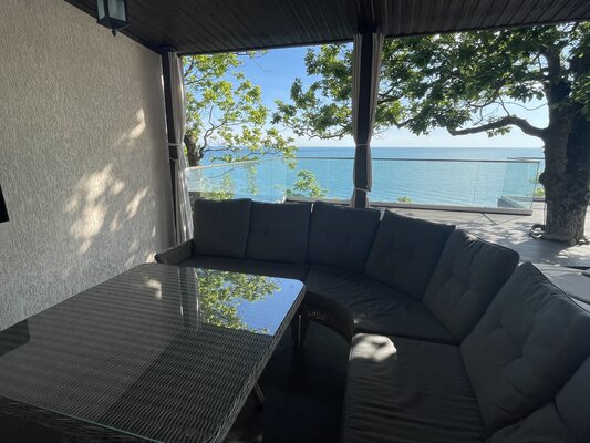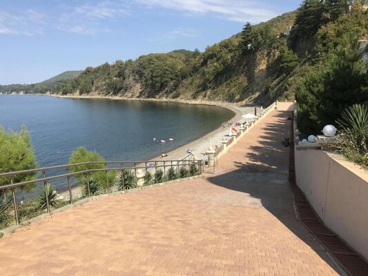 На первой береговой линии, в окружении гор и соснового бора, расположен коттедж «Дом & Пляж». Он находится в Туапсинском районе рядом с поселком Ольгинка, всего в 50 метрах от берега моря.