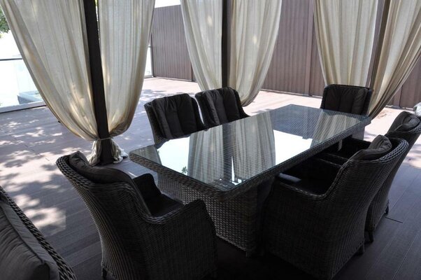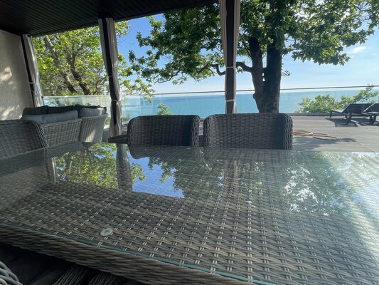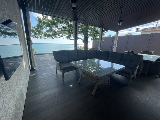Дом выполнен в европейском стиле, с закрытой территорией, где есть зона для барбекю и лаундж-терраса с панорамным видом на море.