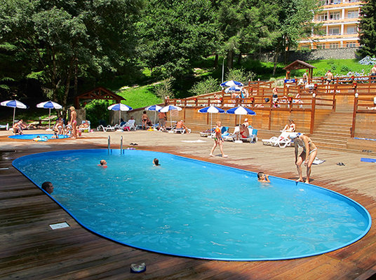 База отдыха «Красная Поляна» расположена в 50 километрах от города-курорта Сочи, у подножья Главного Кавказского хребта, на высоте 730 метров над уровнем моря. Уникальный горно-морской климат района поселка Красная Поляна ставит её в число лучших курортов Европы.