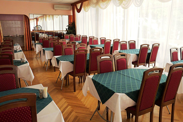 Столовая — отдельное здание; кухня: европейская; время работы: завтрак 07:30 – 09:00, обед 14:00 – 15:30, ужин 18:30 – 20:00