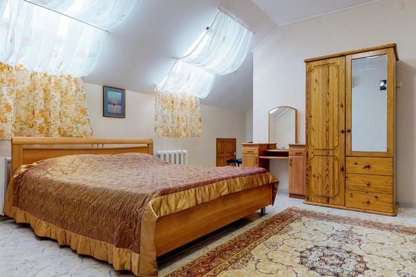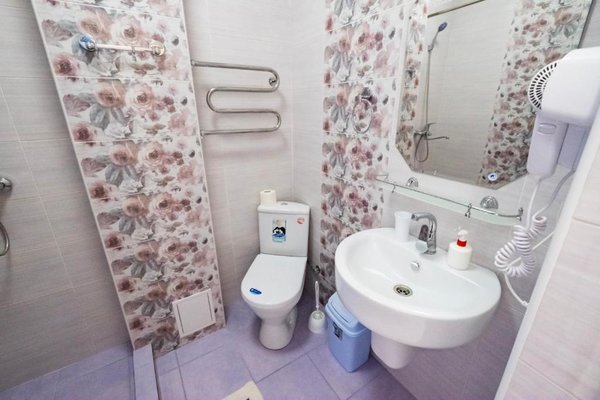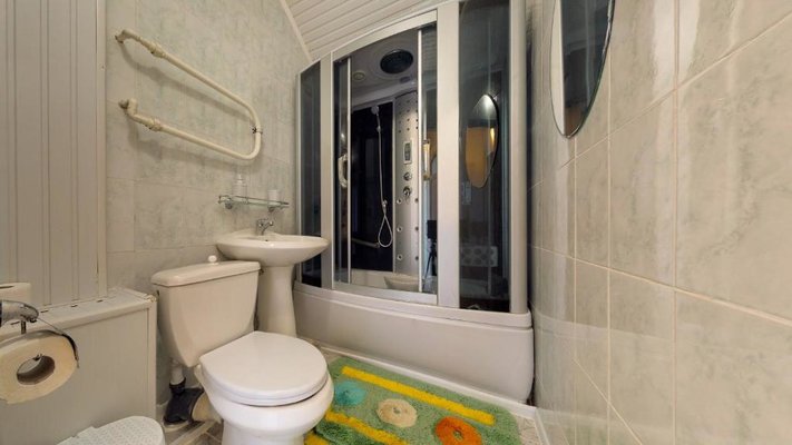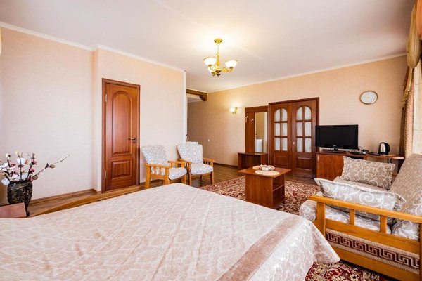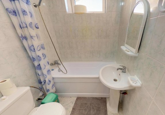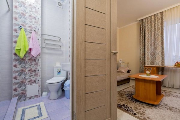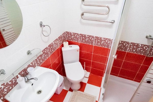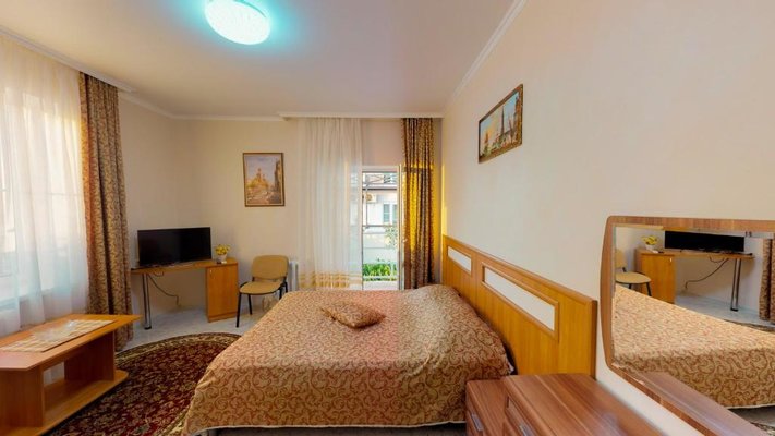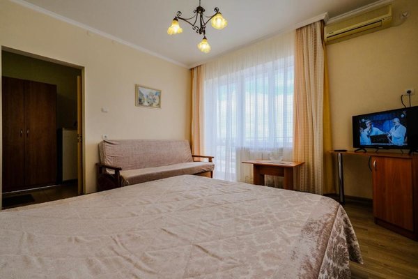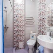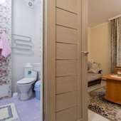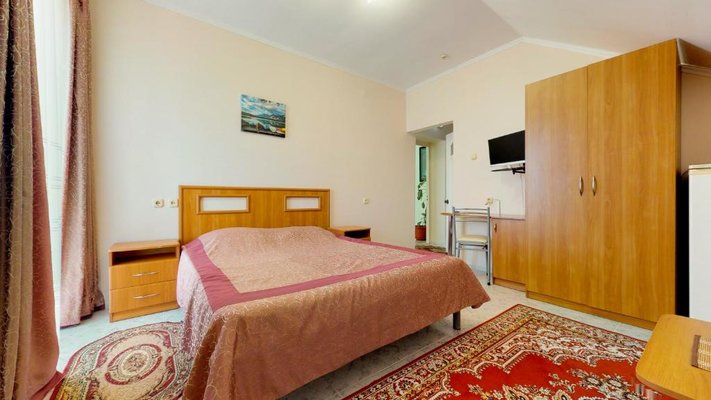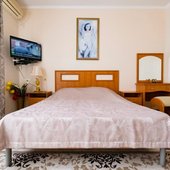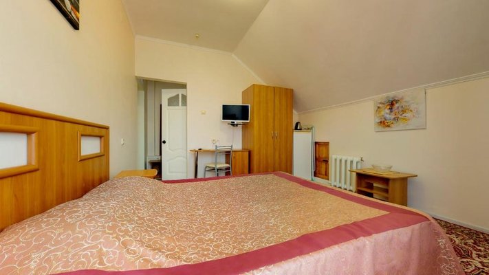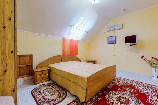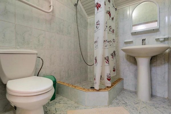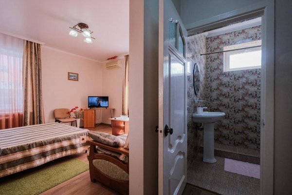 В числе удобств каждого номера гостевого дома «Крутой берег» — чайник, шкаф, телевизор с плоским экраном и собственная ванная комната.