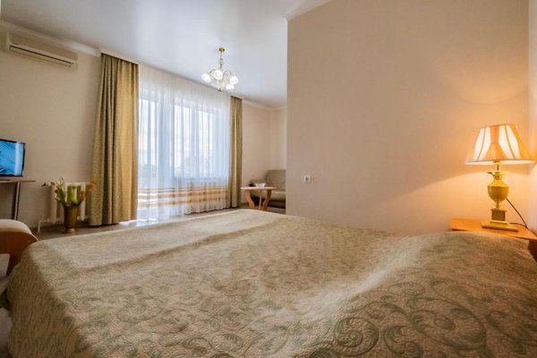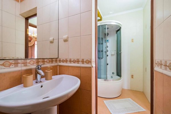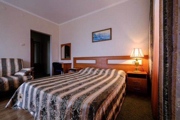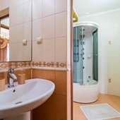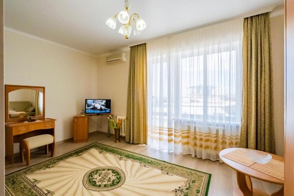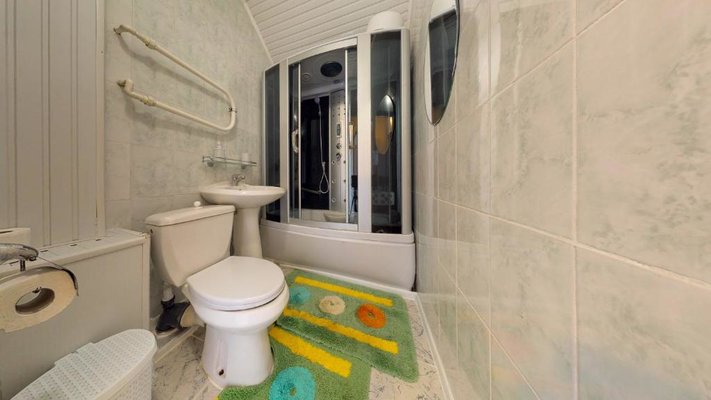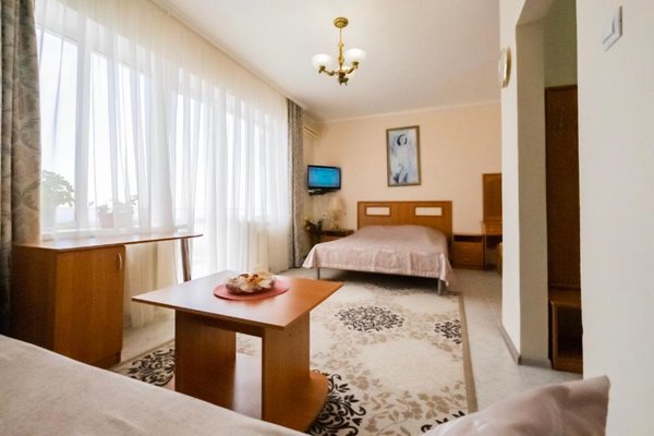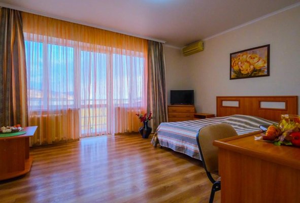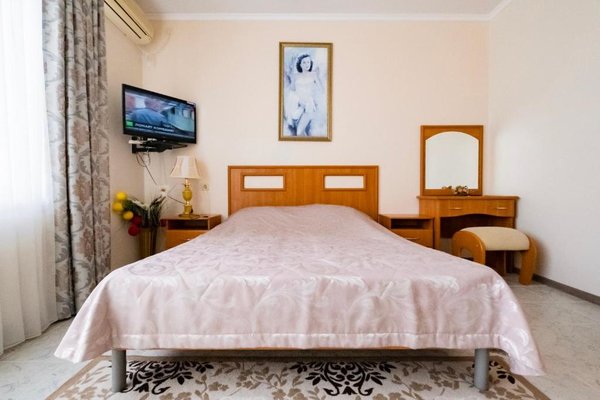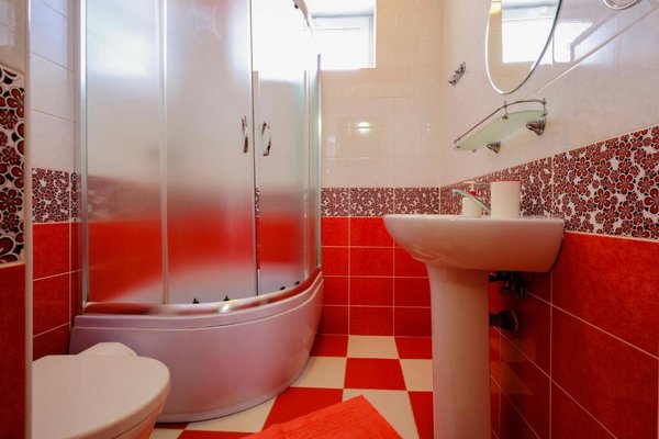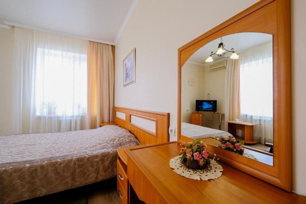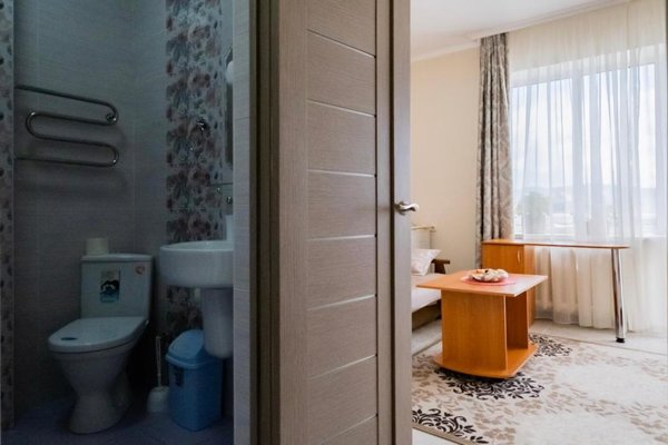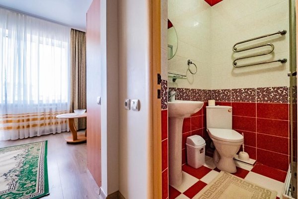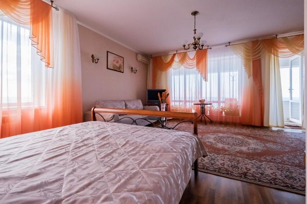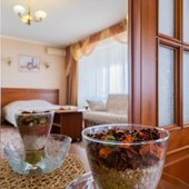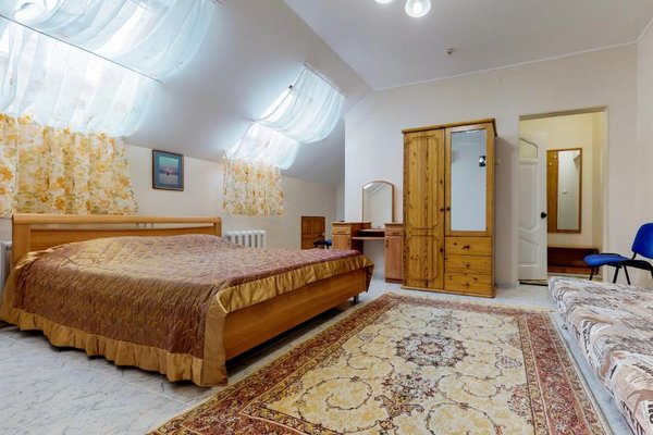 В числе удобств каждого номера гостевого дома «Крутой берег» — чайник, шкаф, телевизор с плоским экраном и собственная ванная комната.