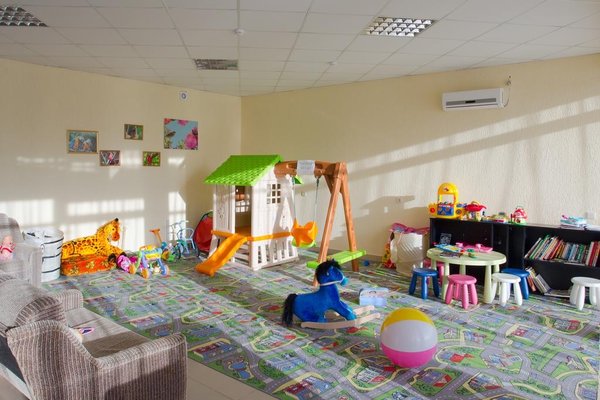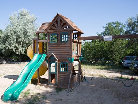 Для детей до 10 лет есть детская площадка, для детей до 5 лет – детская игровая комната в корпусе. Взрослые могут сыграть в волейбол или настольный теннис.