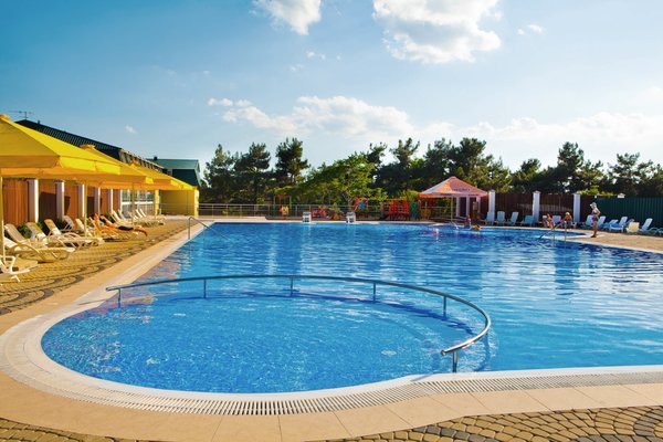 Для тех, кто любит отдых в Геленджике с бассейном, на территории находится прекрасный подогреваемый бассейн с чистейшей пресной водой площадью 48 кв.м. и глубиной 1,5 м. Две отдельные детские зоны позволят малышам насладиться купанием, а родителям не беспокоится за безопасность ребенка. Вокруг бассейна расположены навесы с лежаками и шезлонгами. Рядом с бассейном находится небольшое кафе, где все желающие могут приобрести прохладительные напитки или мороженое.