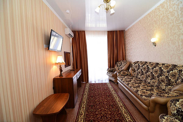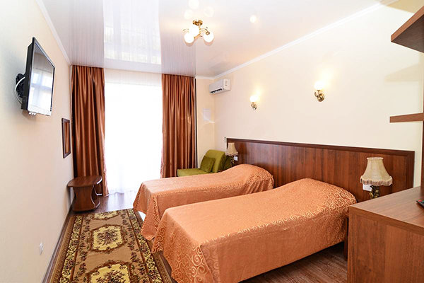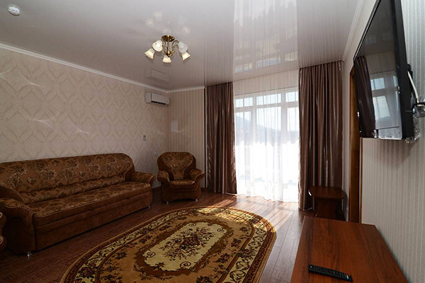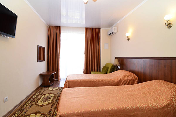 Комнаты выполнены в классическом стиле, который создает атмосферу уюта и комфортного отдыха. Мебельные наборы отлично вписываются в интерьер и делают проживание удобным и непринужденным. Сплит-система пригодится в жаркое время года, а телевидение поможет быть в курсе последних событий. Балконы дают возможность любоваться южной природой во всей красе.