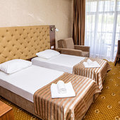 Разнообразие категорий номерного фонда дает возможность гостям подобрать номера на свой вкус и финансовую возможность от «Стандарта» до панорамного «Делюкс». Номера имеют индивидуальную туалетную комнату, где есть все необходимое для принятия ежедневных водных процедур.