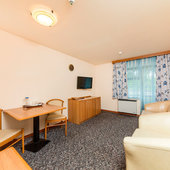 - для гостей номеров Люкс: дополнительные закуски и алкогольные напитки (бутилированные шампанское, вино, водка).