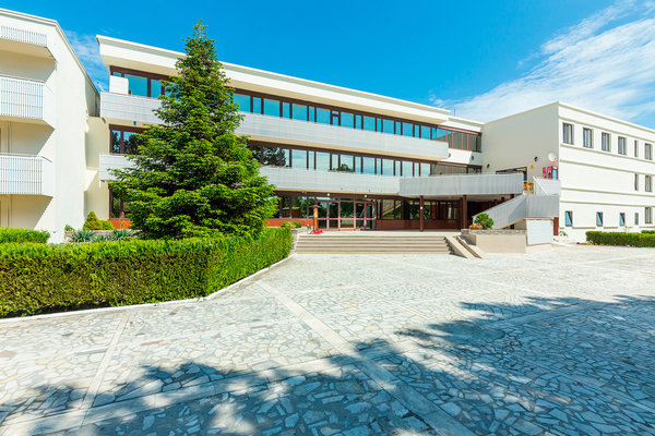 Пансионат имеет просторную охраняемую территорию, расположенную в 500 м от собственного пляжа. Отдыхающие могут разместиться в одном из двух трехэтажных корпусов, соединенных крытым переходом. Питание организовано три раза в день по системе «шведский стол», а также имеется дополнительное питание в снек-барах.