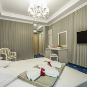 В отеле есть номера разной категории, от «Стандарт» до «Семейный номер-студио», оборудованных системами индивидуального кондиционирования и пожарной сигнализацией, отдельным полным санузлом с феном и туалетными принадлежностями, спутниковым TV, мини-баром, телефоном, сейфом, Wi-Fi.