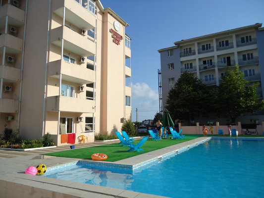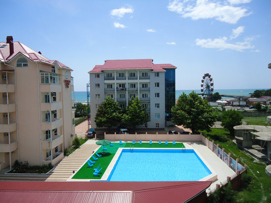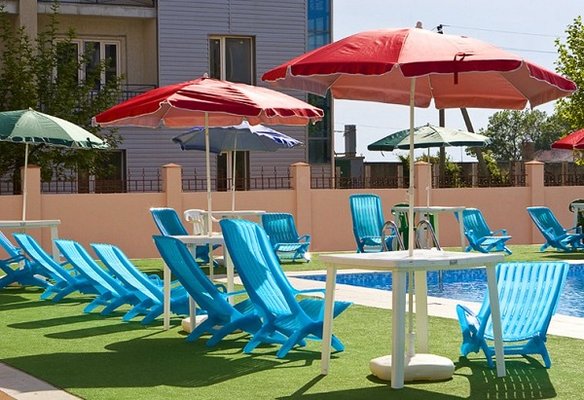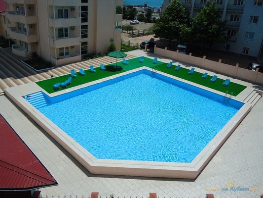 К вашим услугам открытый плавательный бассейн с современной системой очистки и фильтрации воды. Отель с бассейном имеет зону отдыха с шезлонгами, зонтом.