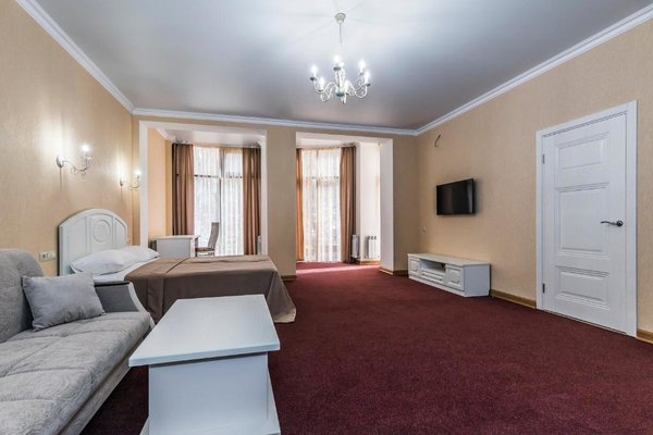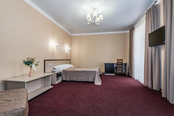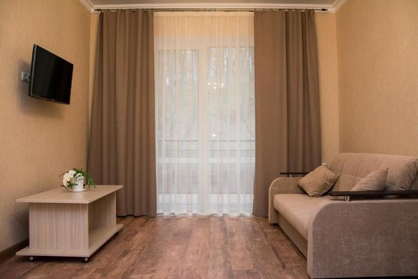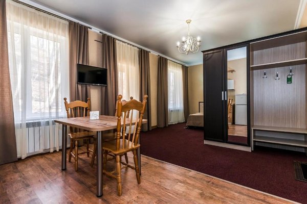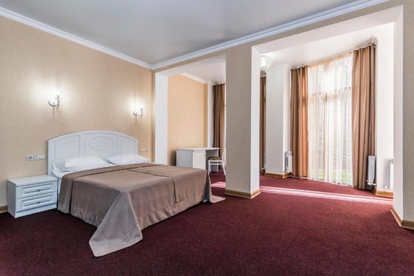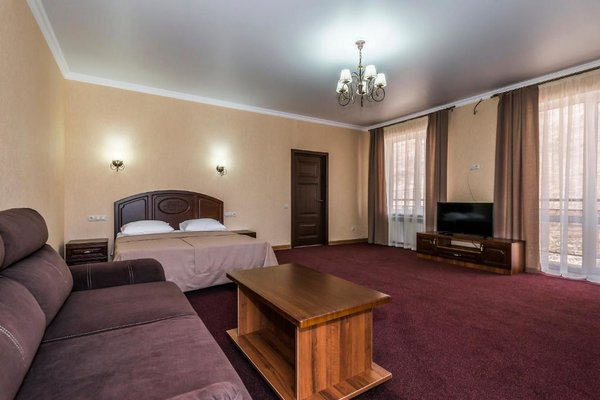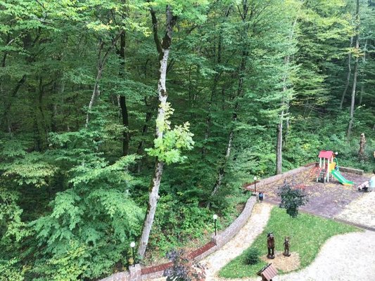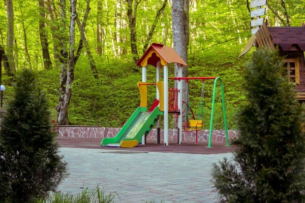 Территория парк отеля Гостиничный комплекс находится в предгорной местности на окраине санатория Горячий Ключ. Вокруг территории расположен смешанный лиственный лес (дуб). Здесь тихо, спокойно и безветренно. В летнее время года здесь приятная прохлада. открытая детская игровая площадка с резиновым покрытием (горка, карусель, качели); уличные скамейки; барбекю зона с навесом; автомобильная парковка; Wi-Fi интернет на всей территории парк отеля;