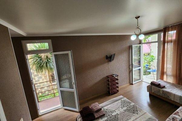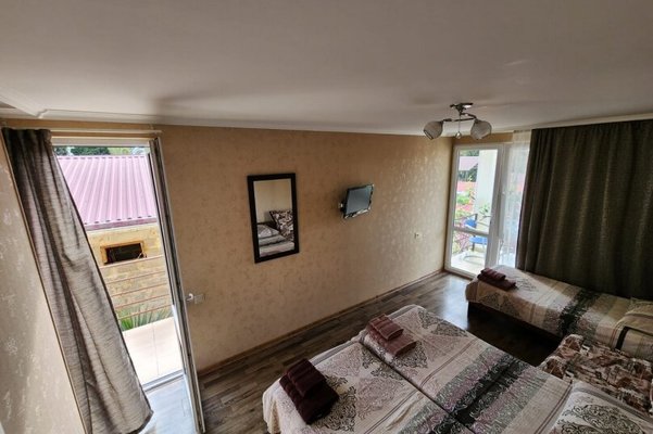 Для размещения доступно 10 стандартных номеров с террасами, из которых 4 также имеют балконы. Во дворе гостевого дома вы найдете зеленые насаждения и комфортные места для отдыха, а на летней кухне можно приготовить вкусную еду и укрыться от жары.