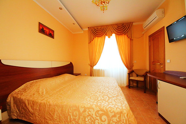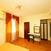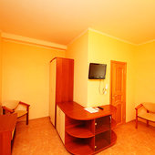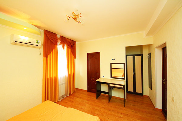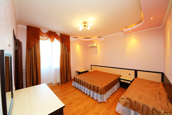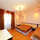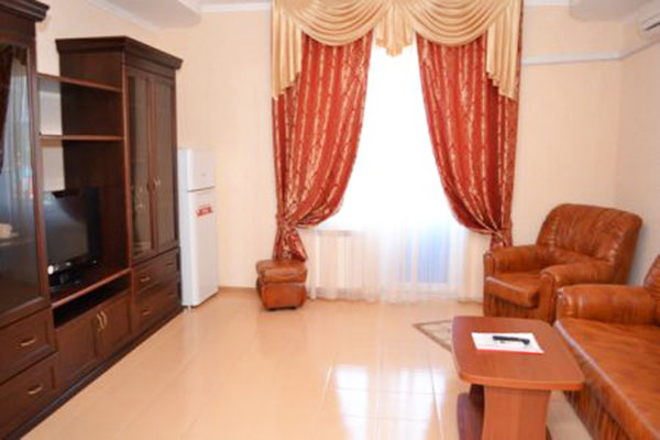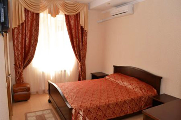 Гостиничные номера (1-но и 2-х комнатные) оборудованы мебелью евро-стандарта, спутниковым телевидением, холодильником, системой кондиционирования и вентиляции, санузлом, средствами личной гигиены. Смена белья – 1 раз в 7 дней, ежедневная уборка номеров.
