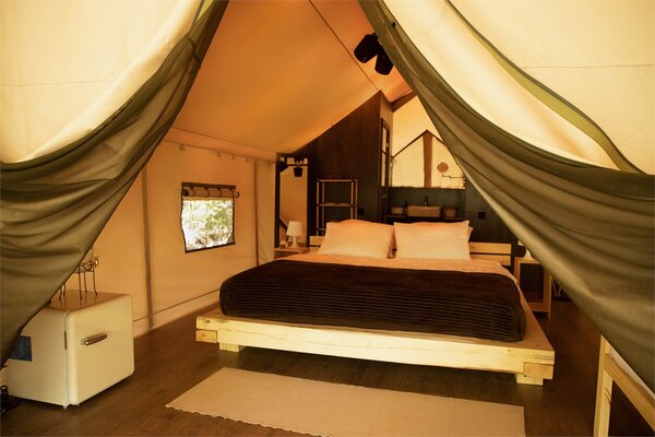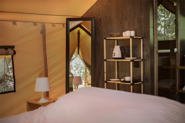 Некоторые тарифы включают континентальный завтрак. На территории глэмпинга работает ресторан, предлагающий широкий выбор блюд.