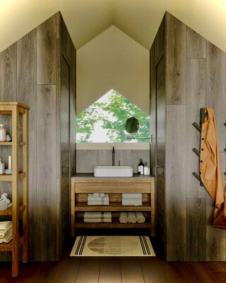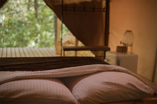 Комфортабельные домики в окружении леса создадут для вас уютную атмосферу. Мягкие кровати с безупречным постельным бельем, удобные шкафы, кофейные столики, холодильники, чайники и посуда создают домашнюю обстановку. Современные ванные комнаты, расположенные внутри домиков, оснащены водонагревателями, туалетно-косметическими принадлежностями и новой сантехникой.