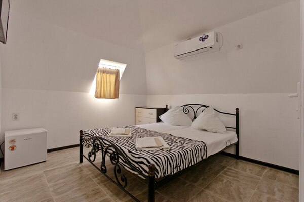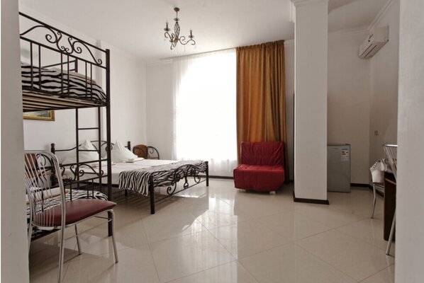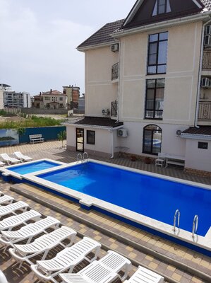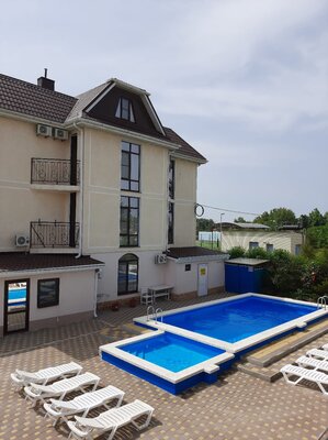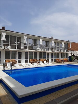 На территории в 500 метрах от моря располагается четырехэтажное здание с мансардным этажом и двухэтажный корпус. В номерах гостей ждут комфортные и светлые интерьеры, некоторые номера имеют балконы. В каждом номере установлена сплит-система, есть телевизор, а в ванных комнатах предоставляются косметические наборы.