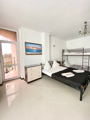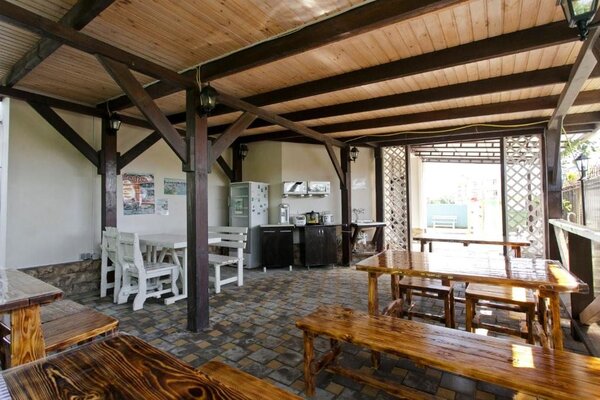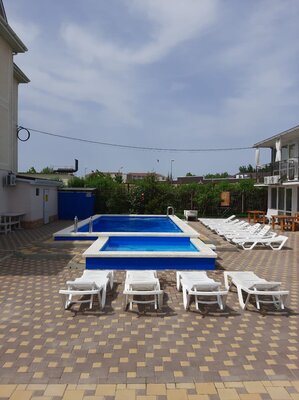 Для удобства гостей в гостевом доме есть общая кухня со всей необходимой техникой и посудой. На территории работает сезонный бассейн, есть парковка, игровая площадка для детей. Широкий песчаный пляж находится всего в 10 минутах ходьбы от гостевого дома.