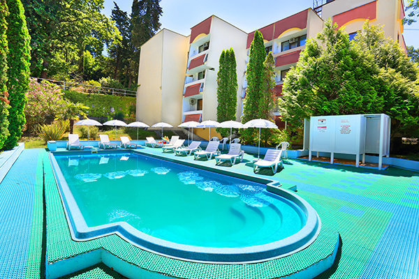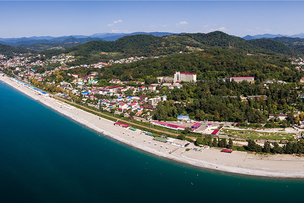 Собственный пляж имеет смешанный грунт (песок и галька). Протяженность 228 метров. На пляже:
