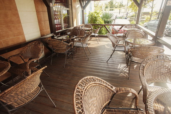 Кафе с открытой террасой, расположенное на 1-м этаже, готово предложить демократичные цены на меню и разнообразие блюд русской, японской, кавказской, итальянской кухни.