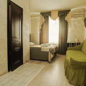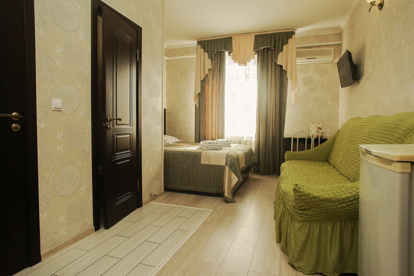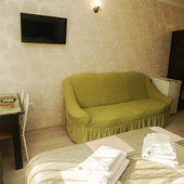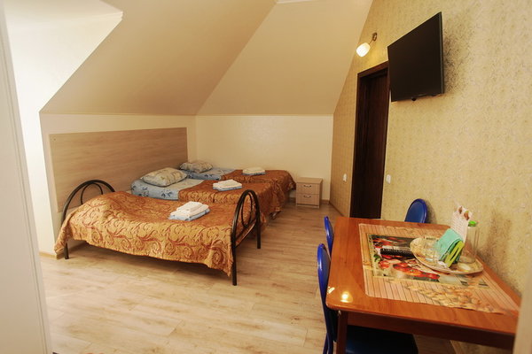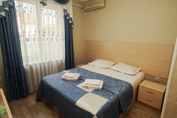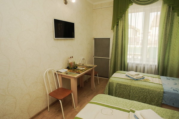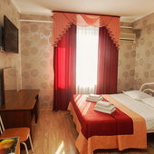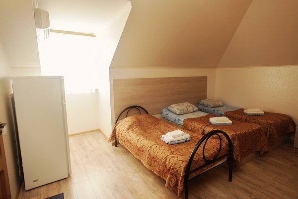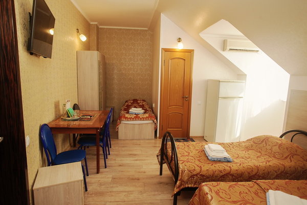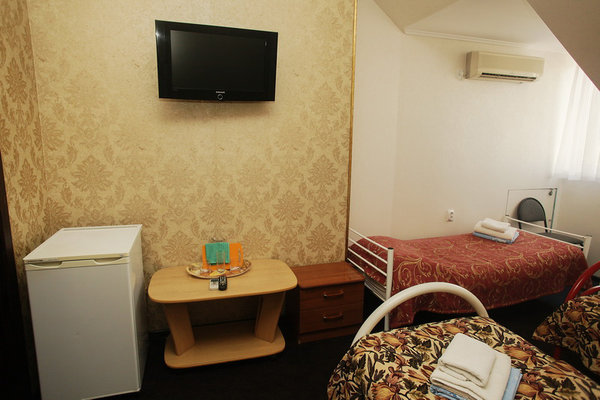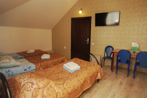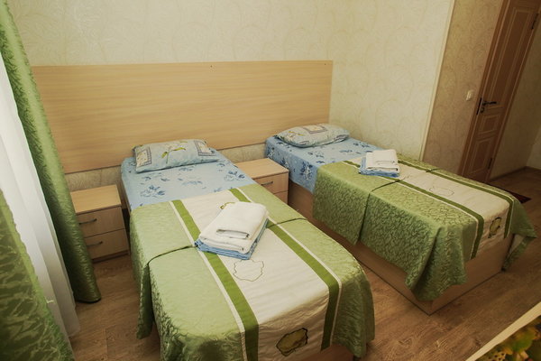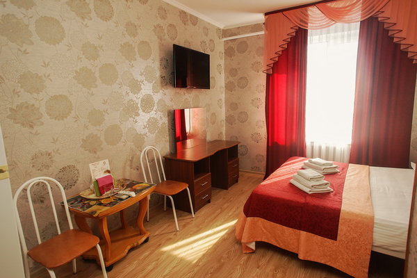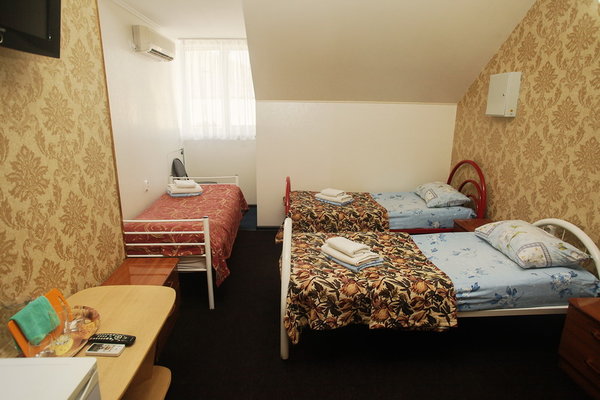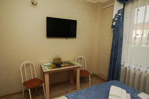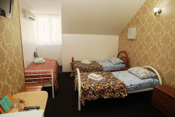 На благоустроенной территории площадью 500 кв. метров находится трехэтажное жилое здание с категориями номеров «Стандарт». Комплектация номера включает необходимый набор мебели, кондиционер, телевизор, мини-холодильник, ванную комнату с душем. Рядом расположены набережная, различные магазины, кафе. На территории бесплатный wi-fi, автостоянка.