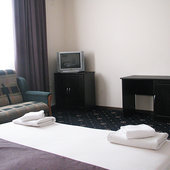Все номера оборудованы современной эксклюзивной мебелью, звукопоглащающим ковролином. В отеле установлена электронная система открывания дверей и система телефонизации, каждый номер оснащён современными санузлами с душевыми кабинами, сплит-системами, ЖК-телевизорами. Доступен room-сервис и услуги прачечной, химчистки, глажки, бесплатный Wi-Fi.