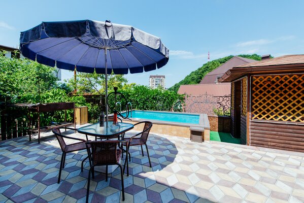 Гостевой дом «Мандарин» расположен в удобном месте в поселке Лазаревское, недалеко от моря и железнодорожной станции. Территория дома окружена забором и оборудована системой видеонаблюдения для безопасности гостей. В гостевом доме предоставлен широкий выбор удобств: баня с дровяным отоплением и обливным ведром для релаксации, комната отдыха для приятного времяпрепровождения.
