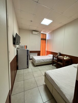 Мы позаботились о вашем комфорте: каждый номер оборудован всем необходимым для приятного проживания. К вашим услугам кондиционер, холодильник, телевизор, фен, а также удобный чайный уголок с чайником, посудой, чаем и кофе. Для приготовления лёгких закусок предусмотрена микроволновая печь. Для вашего удобства на каждом этаже есть гладильная доска и утюг.