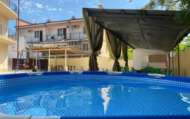 Для самостоятельного приготовления пищи оборудована общая кухня с посудой и техникой. На территории также имеются беседка, мангальная зона и террасы со столиками. К услугам гостей открытый каркасный бассейн и детская площадка. Доступна парковка для личного транспорта, а также услуги трансфера и прачечной.