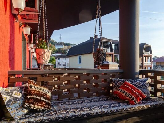 На поезде до жд вокзала г. Сочи, затем на электричке до станции «Горный Воздух», затем пройти 1,22 км до отеля.