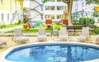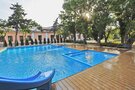 Рядом с игровой площадкой находится детский бассейн, где юные гости могут с удовольствием плескаться под присмотром родителей. Вокруг бассейна расположена зона с комфортными шезлонгами и зонтами, где взрослые могут расслабиться, пока дети занимаются своими играми и весело проводят время в воде.