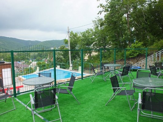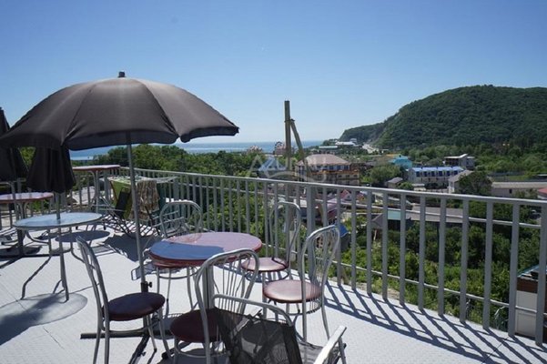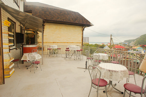 Кафе — на террасе. Режим работы: с 8:00 до 23:00.