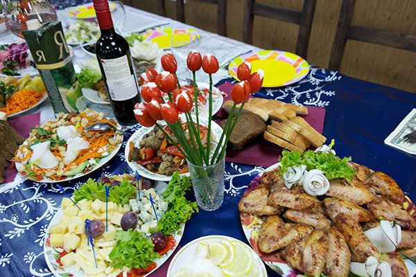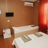 В течение всего дня с 8:00 до 24:00 для гостей доступны пакетированный чай, растворимый кофе, сахар бесплатно. При желании можно заказать комплексный обед и ужин. Для любителей здорового питания доступно фитнес-меню.