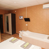 В эко-отеле 23 номера, из которых можно выбрать 2-3-4-местные комнаты. Во всех номерах для гостей предусмотрено все, без чего сегодня нельзя представить современный сервис: полные санузлы, горячая вода, комфортные кровати и телевизоры с плоским экраном. Ванные комнаты укомплектованы основными банными принадлежностями: мыло, шампунь, туалетная бумага, полотенца.