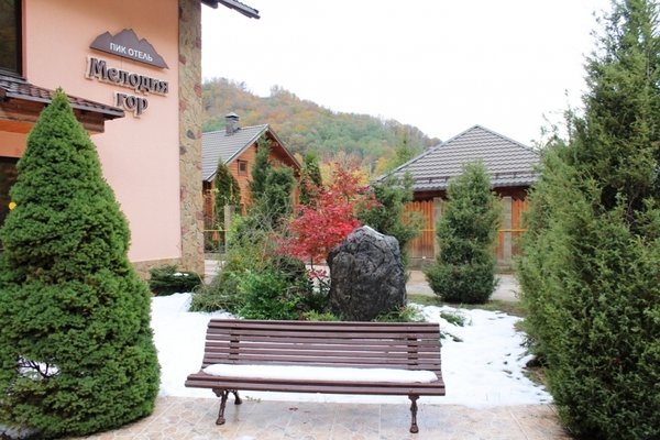 В центре курорта Красная Поляна на территории Сочи рядом с подъемниками канатных дорог располагается современный уютный пик-отель «Мелодия гор». Издалека виднеется в поселке Эсто-Садок красивое яркое 3-этажное здание отеля. Корпус окружен растительностью, из окон номеров и с территории открывается потрясающий вид на окрестные горы.