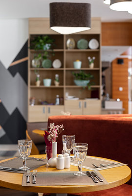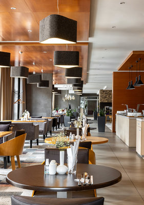 Открыты ресторан с европейской и русской кухней, лобби-бар, возможность обслуживания в номерах и единственный СПА-центр с бассейном. Отель также предлагает круглосуточный фитнес-зал, хаммам, детскую комнату и комнату для хранения горнолыжного оборудования, 5 стильных и современных конференц-залов для проведения деловых встреч и мероприятий.