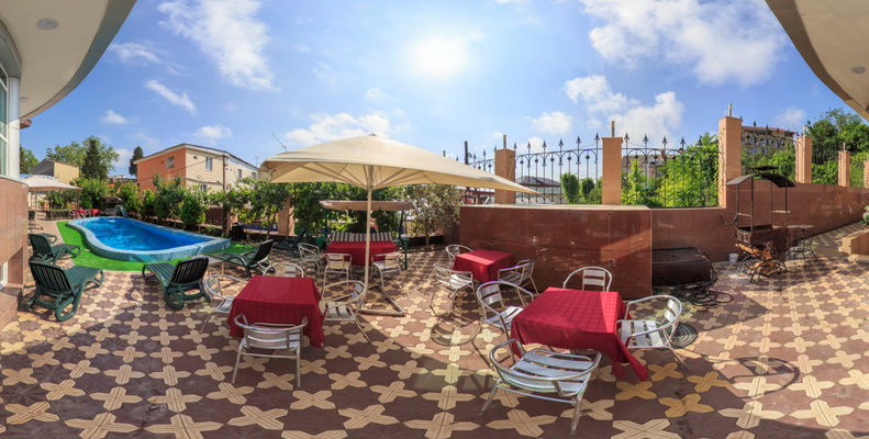 Для гостей в отеле работает ресторан, кафе с летней террасой где отдыхающие могут заказать разнообразные блюда, повара предлагают домашнюю выпечку и вкусные десерты. На территории гостевого дома располагается открытый бассейн с шезлонгами по периметру, зона барбекю, охраняемая парковка, есть бильярд и тренажерный зал, отдыхающим доступна баня и финская сауна. У администратора постояльцы могут заказать трансфер, такси или приобрести экскурсии.