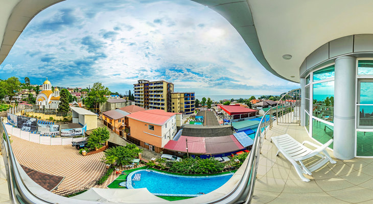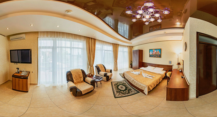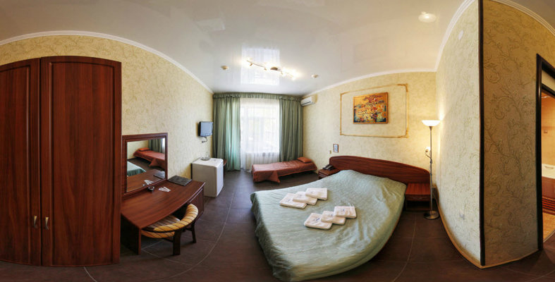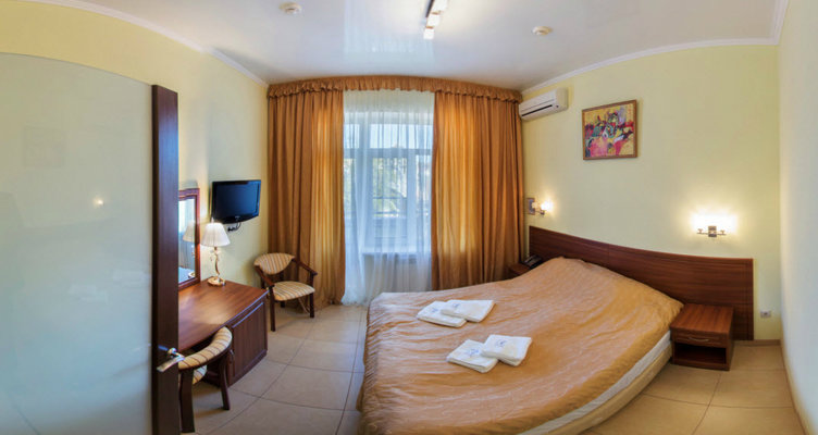 Пятиэтажное здание отеля с лифтом возвышается на небольшой обустроенной территории в 1400 кв.м. Гостиница вместимостью 120 человек включает 41 номер категорий от «стандарта» до «люкса». Каждый номер оформлен в теплой цветовой гамме имеет балкон и оснащен сплит-системой, телевизором, холодильником, набором посуды.