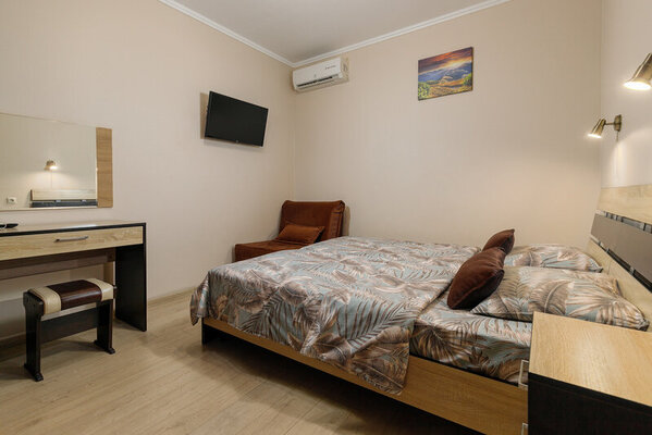 Европейский пляж с пальмами и бунгало находится всего в нескольких минутах ходьбы от гостевого дома. В 10 минутах ходьбы расположены Центральный рынок и остановки общественного транспорта до Сочи, Красной Поляны, Абхазии и Олимпийского парка. Каждый номер оснащен телевизором, холодильником и сейфом, а некоторые имеют вид на реку.