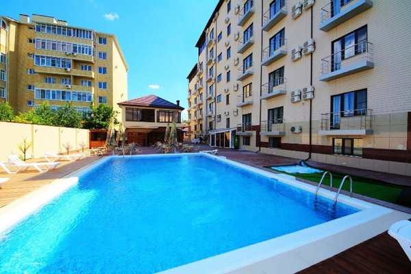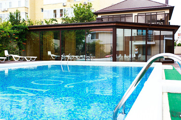 На территории отеля расположен открытый бассейн с шезлонгами, на которых можно позагорать, почитать книгу или просто понежиться на солнышке.